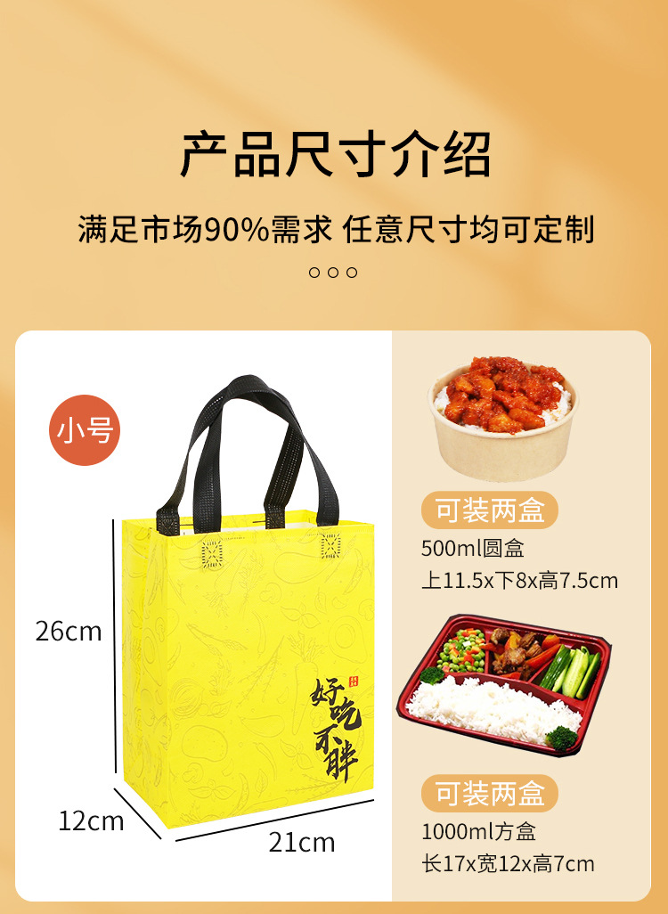 总的来说,无纺布覆膜外卖袋的定做过程需要根据客户的具体需求和供应商的专业能力进行定制,以确保最终的产品能够满足客户的需求。